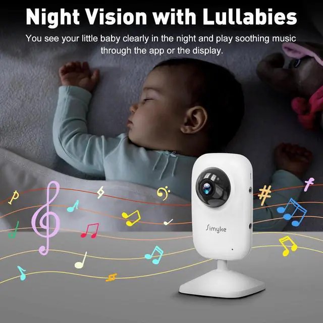 Wireless baby camera monitor with 5 lullabies, you can play music and white noise to sooth your baby, soothing music can help your baby fall asleep.
