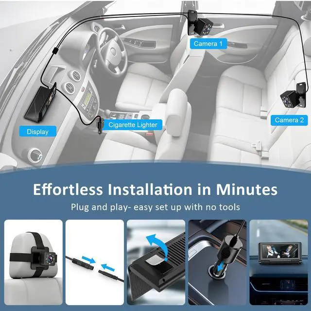 | Cable Length | 74cm/2.43 ft for the cable of display, 65cm/ 2.13ft for the cable with camera,147cm/4.82ft for the cable with cigarette lighter adapter, 5m/16.4ft for video cable |