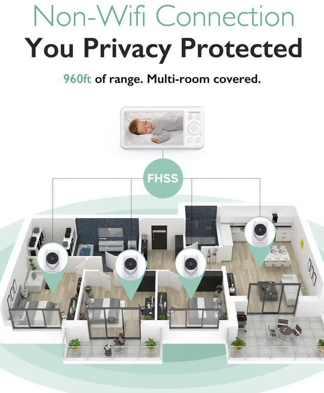 Easy to set up, connect up to 4 cameras- It only takes 5 seconds to pair the additional camera unit with the Momcozy baby monitor BM01 (B0BG83KWQT), and up to 4 camera units can be connected at a time. Meet your needs to take care of multiple children, and can be placed in different rooms so as not to miss any activities of the baby.