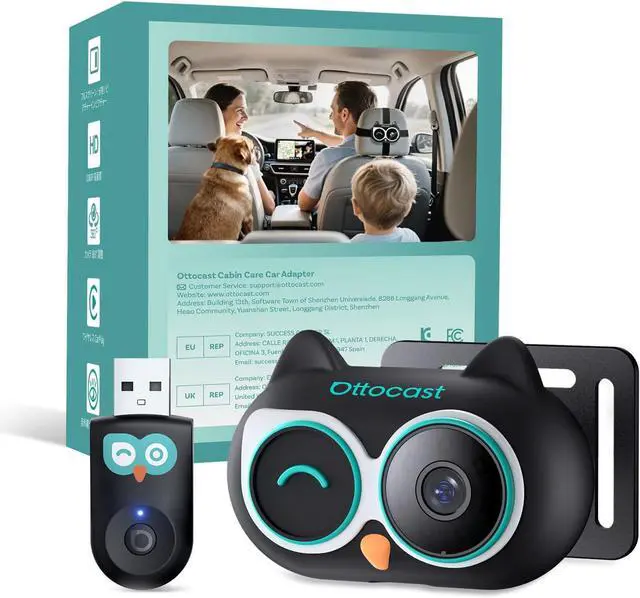 OTTOCAST Cabin Care Baby Car Camera with Wireless CarPlay Adapter, 1080P HD Baby Monitor with IR Night Vision, 150° Wide Angle, Real-Time Rear Seat View On Car Screen, Easy Install
