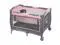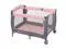 The Baby Trend Lil Snooze Deluxe III Nursery Center Playard features a Removable Rock-A-Bye Bassinet with a canopy, plush fabric and mesh sides for proper ventilation and two hanging toys. The playard includes a removable full bassinet that allows it to convert to a full-size playard, a flip over changing table and a deluxe parent organizer to hold all of the essentials. Your baby will enjoy the electronic music center with volume control, nightlight, and vibration which includes two styles of music and nature sounds. A convenient travel/storage bag allows you to take the Lil Snooze Deluxe III on-the-go and it can be moved from place to place with large wheels and secured with brakes.