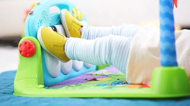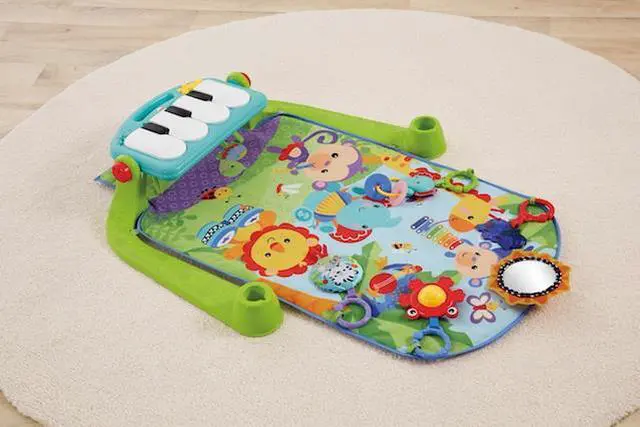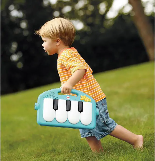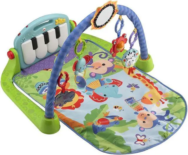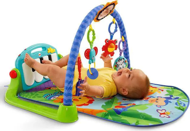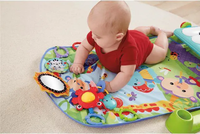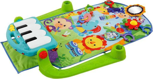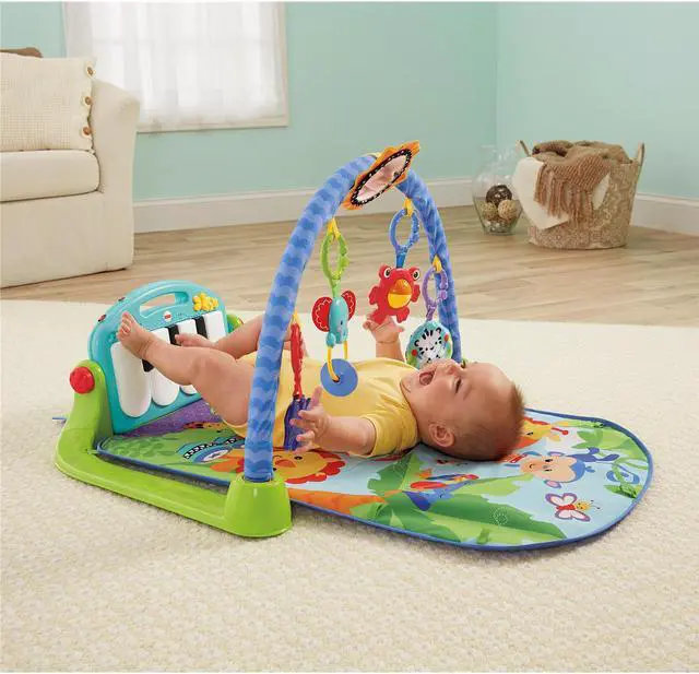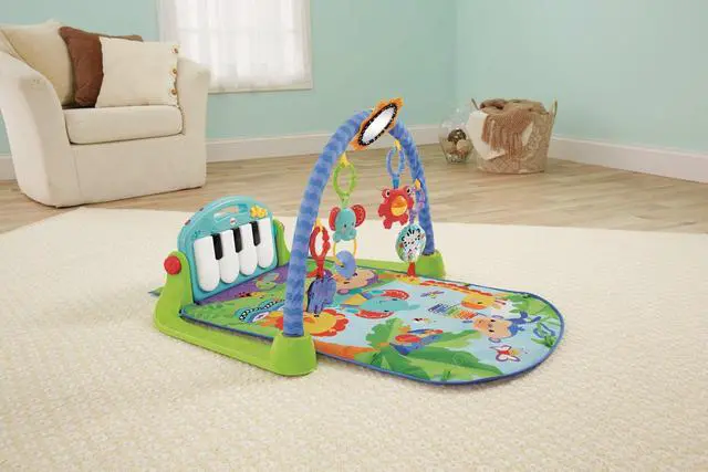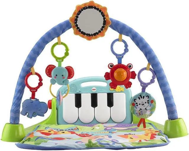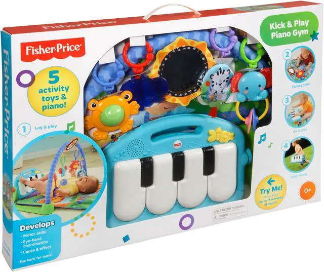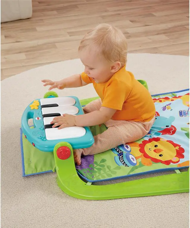 Baby kicks. Music plays. And that’s just the beginning. Movable toys on the overhead gym encourage baby to bat and grasp. Move the arch down for tummy-time play, or let baby sit and entertain you with a piano concert! And now with a removable piano, you can take the musical fun wherever you and baby go!