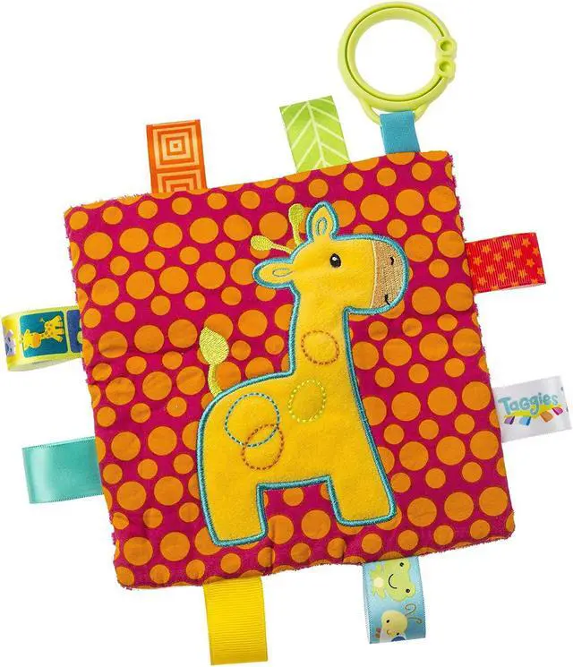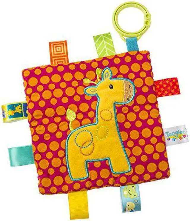 What a fun, soothing activity toy for baby. Crinkle Me Taggie is 6.5 x 6.5-inches, with a fun animal applique and colorful patterned fabric on the outside, crinkle paper and squeaker on the inside. Features lots of interactive tags and a flexible loop for attaching to stroller and crib. Taggies was born over a decade ago when a mom noticed her child's fascination with satin tags. This idea blossomed into a world of treasured products. Exploring Taggies textured tags can provide tactile stimulation that babies crave for development and have an amazing calming effect on little ones. Taggies Signature Collection is recognized as the premium line of wonderfully soft and soothing Taggies toys made by Mary Meyer. At Mary Meyer, we continually strive to design extraordinary products of outstanding quality, all the while keeping an eye on customer service and value.