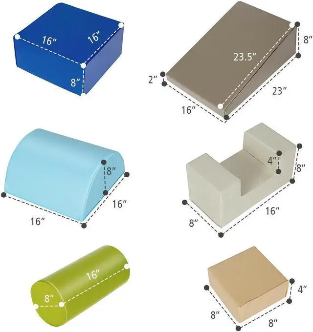 Educational Climb and Play Set: The fun foam playset consists of six differently shaped blocks that allow children to freely combine to stimulate their imagination and creativity. Also, kids can develop their hand-eye coordination and motor skills while playing, which is helpful for their growth.