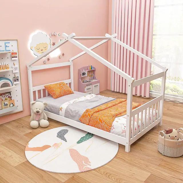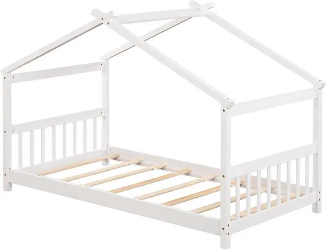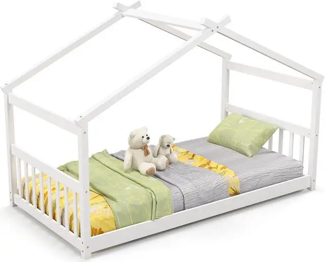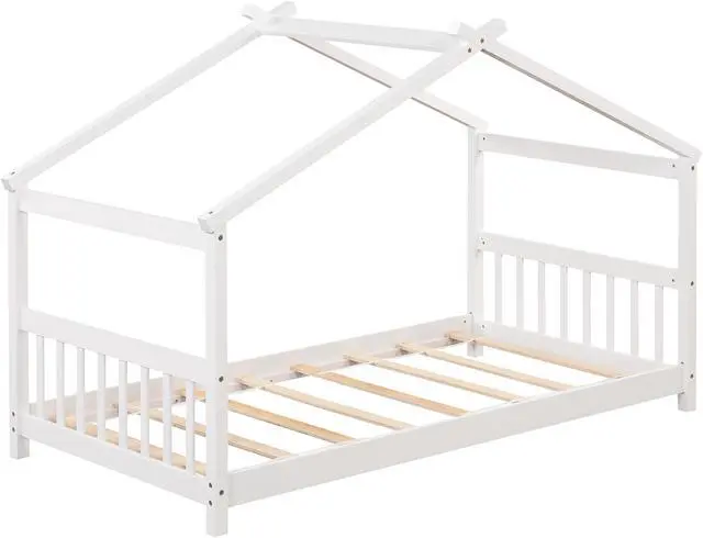 Open and Spacious Twin Bed Frame: This floor house bed features open and low profile design that allows kids to get in and out with great convenience, creating a cozy sleeping area. More, the comfortable headboard and footboard can be used as a backrest while sleeping.