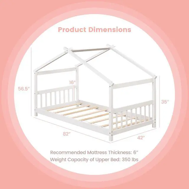No Box Spring Needed: With a long-lasting wooden slats support system, the house bed extends the life of mattress without the need for a box spring. Additionally, the optimal height recommended for mattresses is 6"(not included).