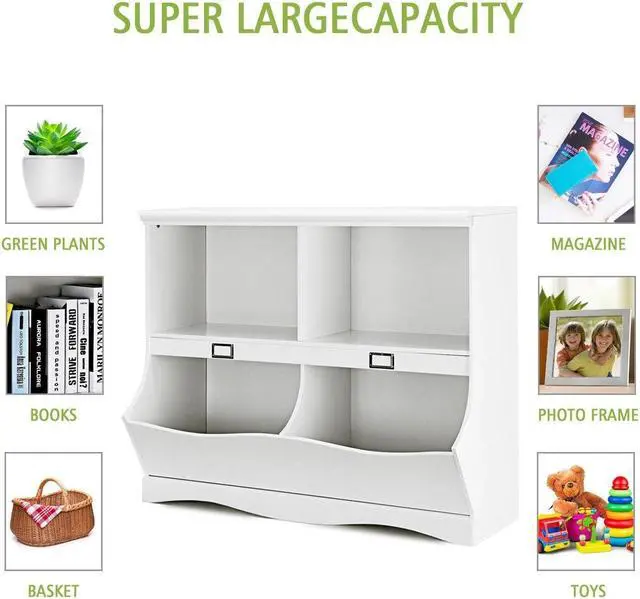 Ergonomics Design: The height for this storage design is ergonomics, and it's thoughtfully designed for Children. It won't be hard for children to put the toys or books on the top shelf. It would be the a good storage partner for children.