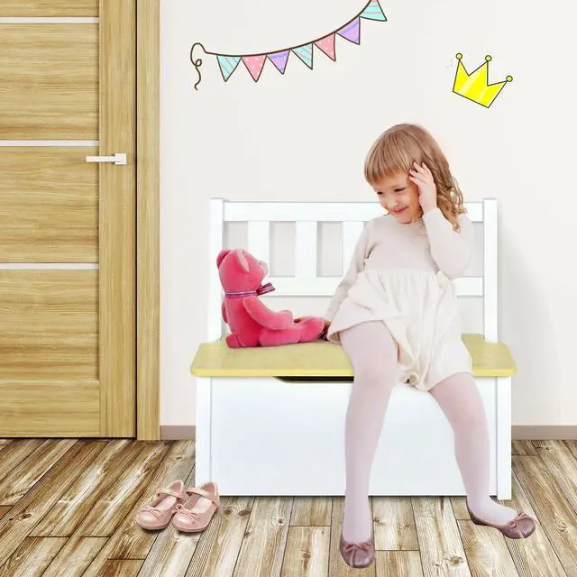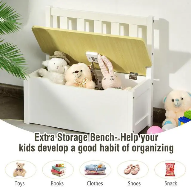 Child-Friendly Design: Both appropriate seat heights and ergonomic backrests allow children to sit healthily and comfortably. Besides, designed to be grooved, the top lid of storage bench is effortless to open and can prevent you from being pinched, which significantly improves safety.