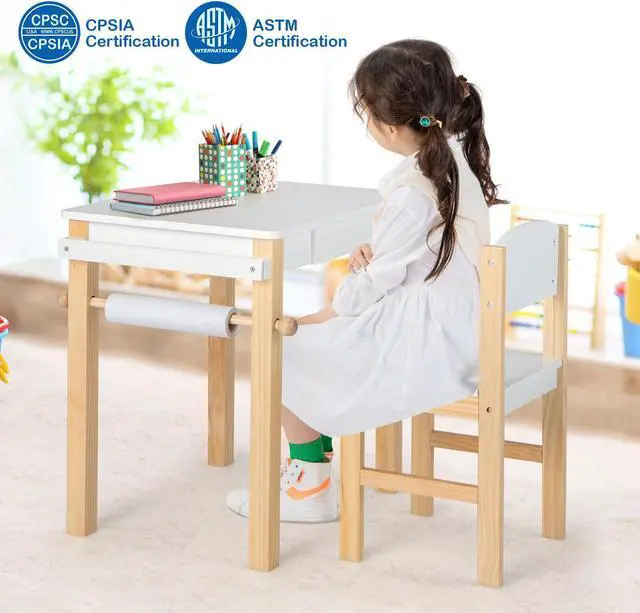 Ergonomic Table and Chair Set: Including a cozy chair with backrest, the kids art table and chair set allows kids to form the habit of sitting properly. You will not need to worry about poor eyesight or deformed spine. What's more, the edges are polished smooth to prevent children's delicate skin from scratches.