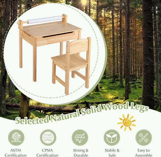 Stable and Robust Construction: Made of selected natural solid wood legs and premium MDF material, the strong and durable structure can withstand years of use. Certified by ASTM and CPSIA, the quality and safety is ensured. Weight capacity of the chair: 110 lbs. Weight capacity of the tabletop: 66 lbs.