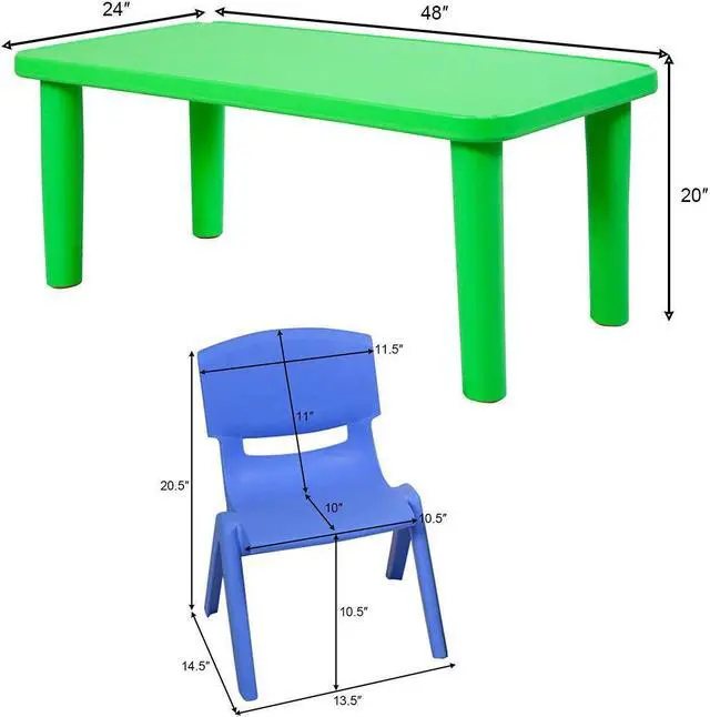 Wide Application: This large rectangle table with 4 chairs is available for 4 kids, and you can add more chairs around the table. It will be an eye-catching addition to families, kindergartens, primary schools, and all kinds of children's playrooms, which is conducive to the development of children.