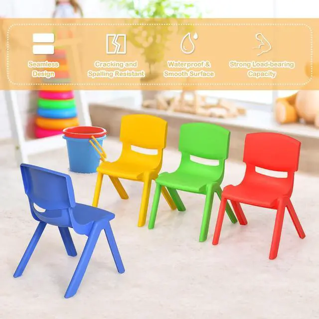 4 Stack-able Chairs: This toddler learning set come with 4 lightweight and colorful chairs. They are ergonomically designed so that kids can sit on the chairs more comfortably. Its lightweight and portable enough for kids to move and carry them. Its stack-able design greatly saves space while they are not in use.