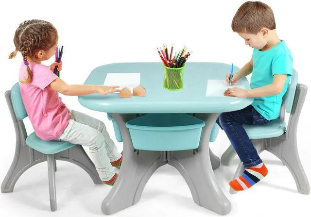 Strong Bearing Capacity: Thanks to the impact resistant HDPE material, the table and chairs set features a sturdy frame separately. Both the table and the chair can hold 176 pounds, allowing kids to play with them freely. Don't worry about it falling apart even if kids abuse it.