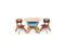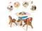 Child-size Furniture Set: The furniture set consists of a table and two chairs. The table is 27" x 27" x 20" in dimension and the chair is 13" x 13" x 20" in dimension. The chairs pair perfectly with the table in dimension. Both the table and the chairs are just the right height for kids ages 2 to 6 years old.