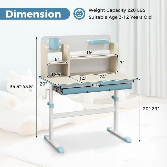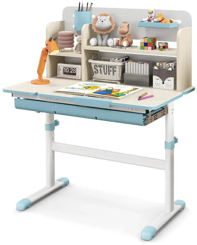 Adjustable Height: The tabletop height of this study desk can be easily adjusted between 20"-29" by rotating the lever and fixing locking knobs. This height-adjustable desk can grow up with your child and ensure a perfect posture for homework, art projects and more.