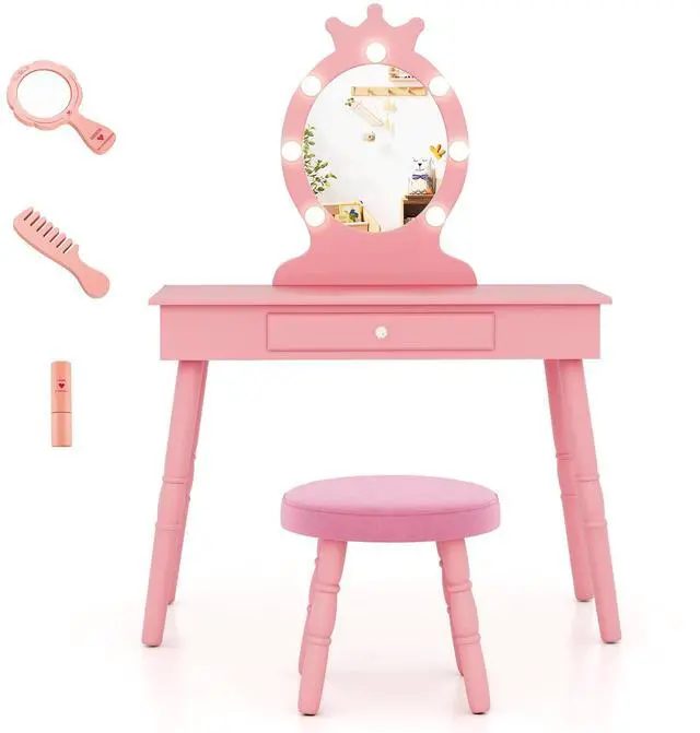 Pull-out Drawer and Clear Mirror: The vanity set comes with a large drawer to keep kids cosmetics and jewerly well organized. The drawer also features a exquisite handle for convenient use. The mirror on the vanity clearly reflects the childs face. The mirror can be moved away when not in use, allowing kids to use it as a vanity table or writing desk.