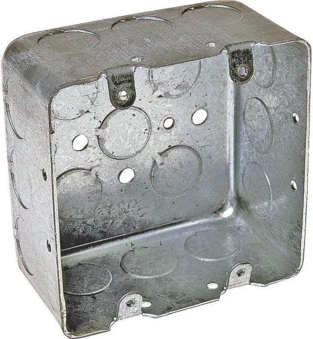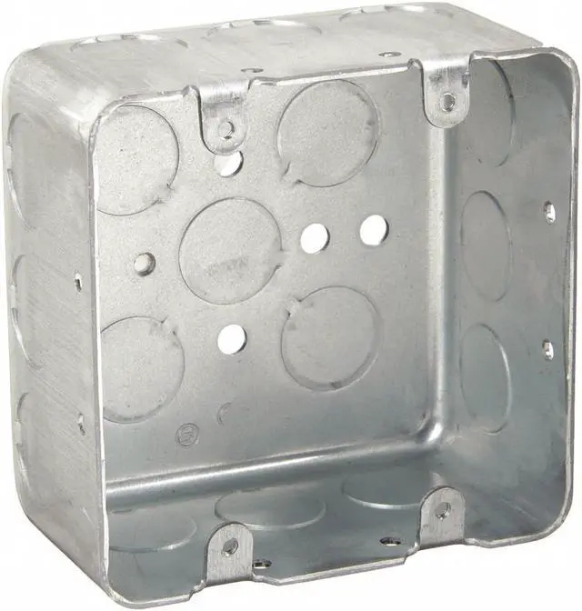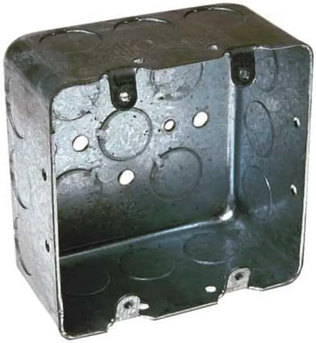 4 in. Square Box, 2-Device Switch Box, Drawn, 2-1/8 in. Deep, Seventeen 1/2 in. KO's