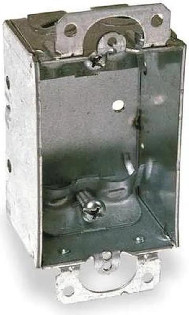 Electrical Box, Box Type Switch, Number of Gangs 1, Bracket Type Not Applicable, Capacity 7.5 cu in, Material Steel, Number of 1/2 In. Back Knockouts 0, Number of 1/2 In. Side Knockouts 0, Clamp Type NMSC Clamps, Nominal Depth 1 1/2 in, Nominal Length 3 in, Nominal Width 2 in, Color Gray, Standards UL Listed. This item has been restricted from sale in the following state (s): []