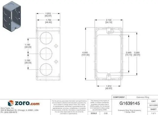 4 in. x 2 in. Handy Extension Ring, Drawn, 1-7/8 in. Deep, Eight 1/2 in. KO's