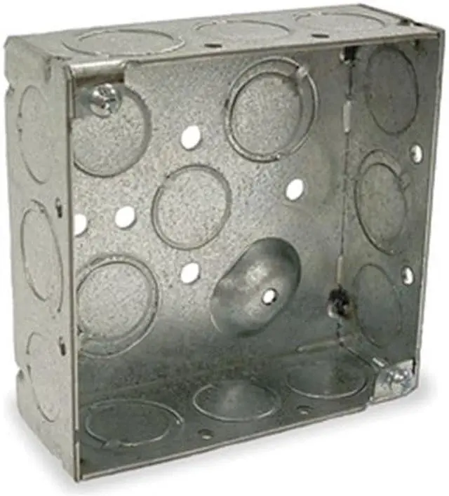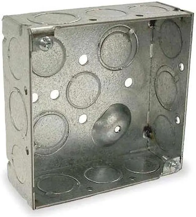 4 in. Square Box, Welded, 1-1/2 in. Deep with Ten 1/2 in. KO and Six TKO's, Raised Ground