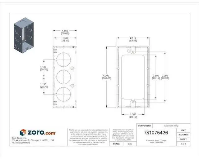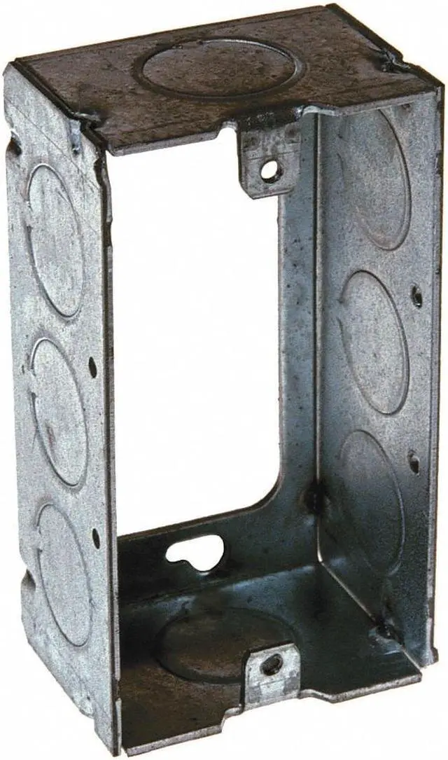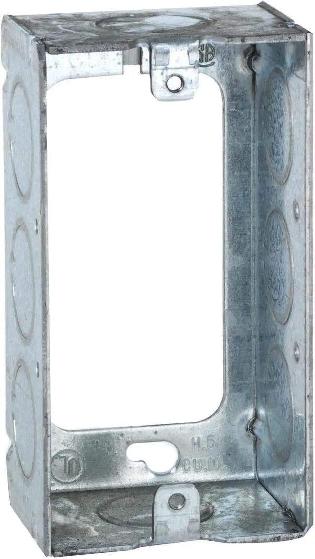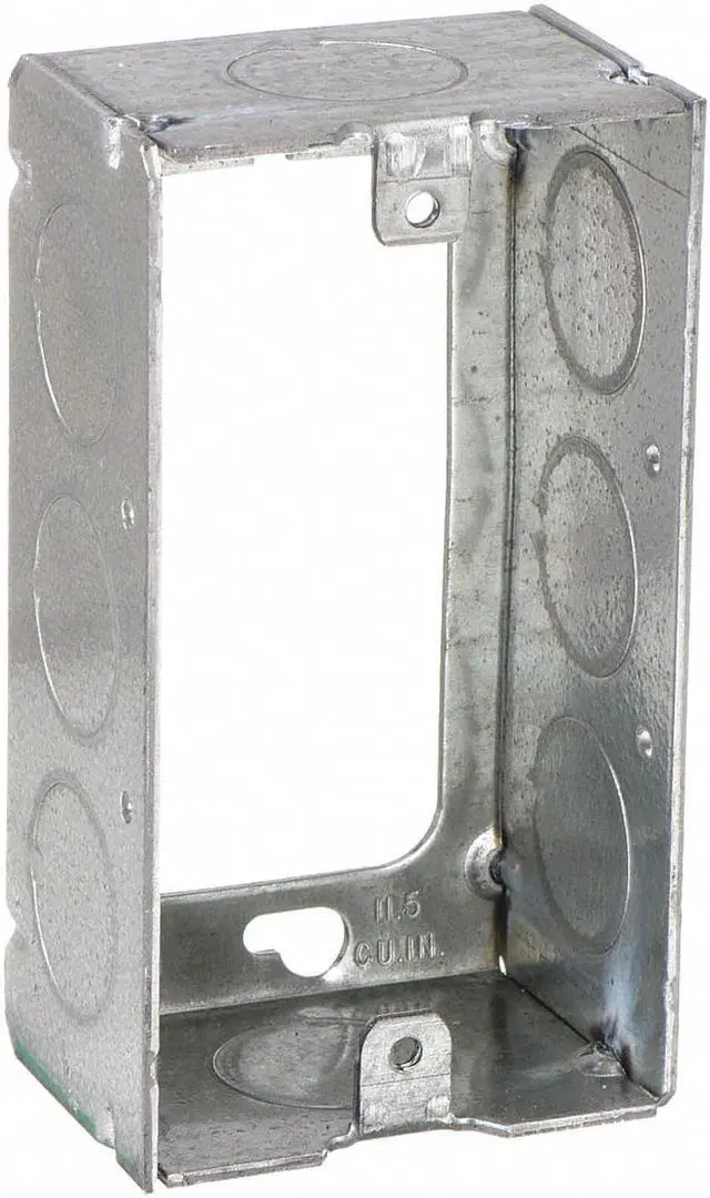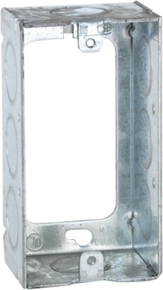 Welded construction 4 in. x 2 in., 1-1/2 in. deep Supplied with eight 1/2 in. knockouts 11.5 cu. in. capacity Acceptable for use in 2-hour fire rated walls
