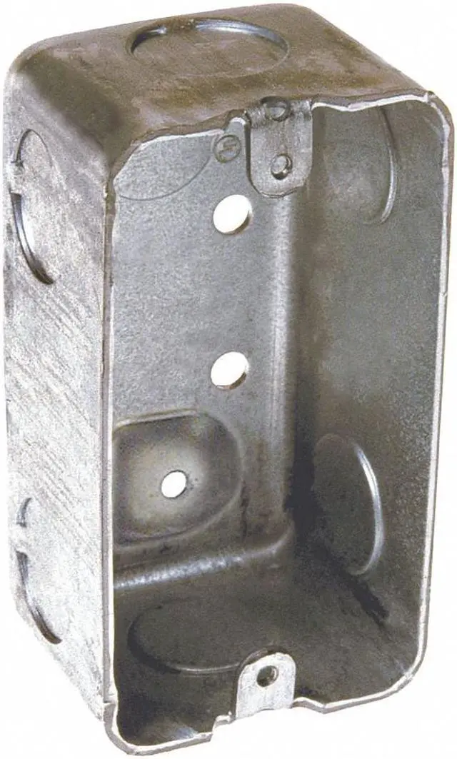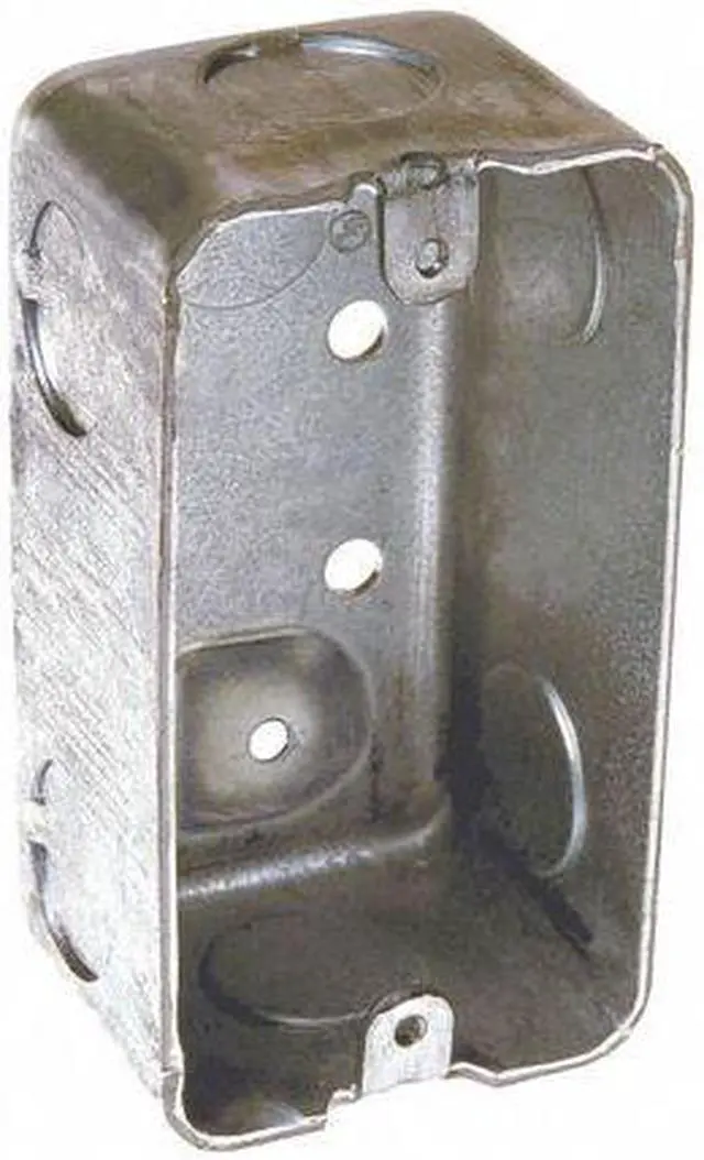 Electrical Box, Box Type Handy, Number of Gangs 1, Bracket Type -, Capacity 13 cu in, Material Galvanized Steel, Number of 1/2 In. Back Knockouts 0, Number of 1/2 In. Side Knockouts 0, Clamp Type -, Number of 3/4 In. Back Knockouts 1, Number of 3/4 In. Side Knockouts 6, Nominal Depth 1 7/8 in, Nominal Length 4 in, Nominal Width 2 in, Color Silver, Standards UL File E195978. This item has been restricted from sale in the following state (s): []
