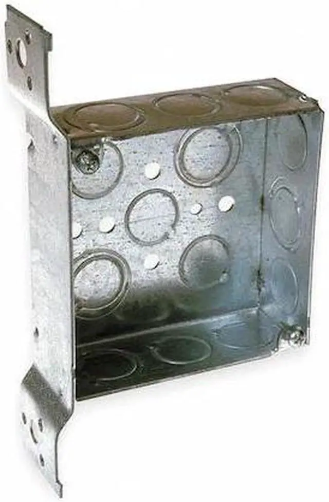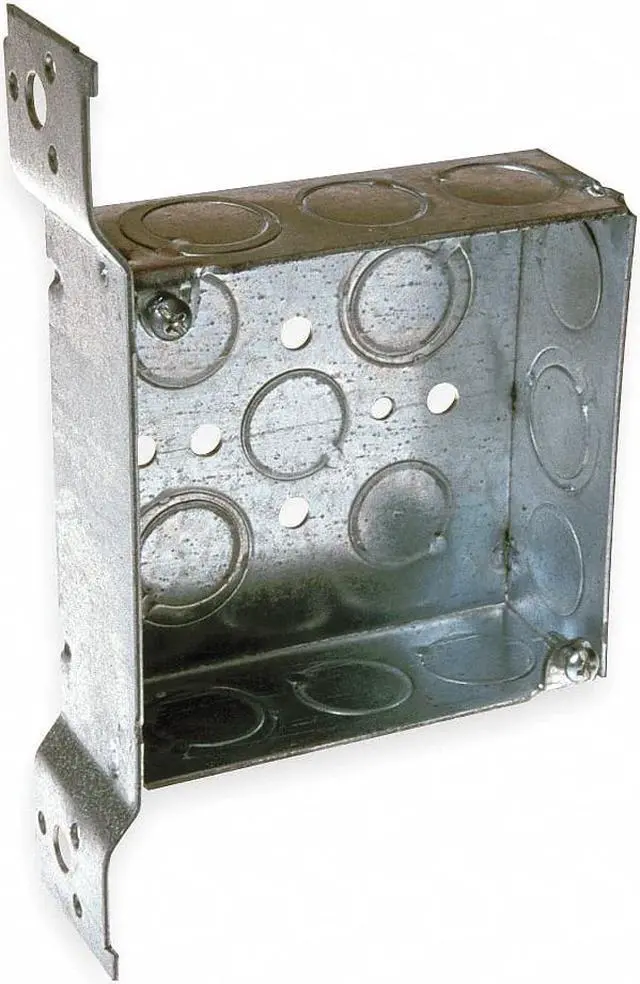 4 in. Square Box, Welded, 1-1/2 in. Deep with Nine 1/2 in. KO's and Five TKO's, FS, Flush Bracket