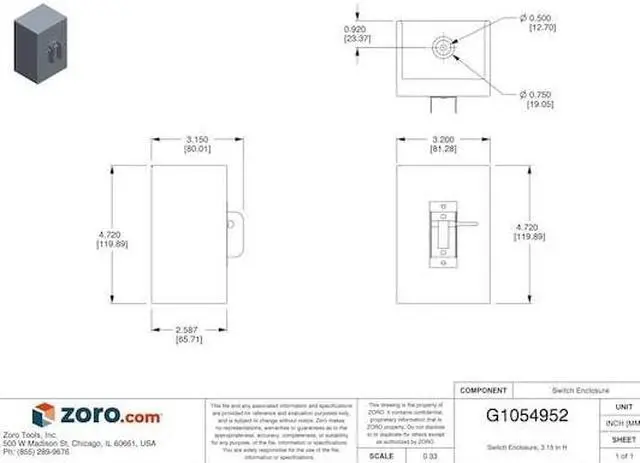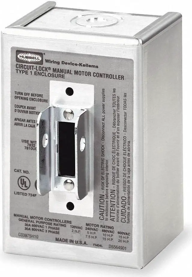 Switch Enclosure, Accessory Type Switch Enclosure, Operator Toggle Switch, Current AC 40 A, Includes Metallic NEMA 1 Enclosure, NEMA Size 1, Number of Poles Not Applicable, Maximum Voltage Rating Not Applicable, Overall Height 3.15 in, Overall Width 3.2 in, Overall Depth 4.52 in, Standards UL Listed. This item has been restricted from sale in the following state (s): []