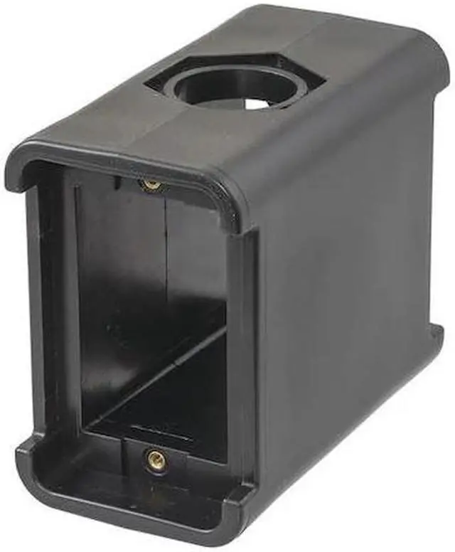 Portable Outlet Box, Number of Gangs 2, Number of Inlets 2, Length 5 in, Width 2.77 in, Depth 4.3 in, Hub Size 1 in, Color Black, Bracket Type Cord Connector, Box Type Shallow, Capacity 19 cu in, Description/Special Features Configurable, Material Thermoplastic Elastomer. This item has been restricted from sale in the following state (s): []