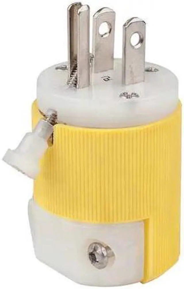 Straight Blade Plug, Connection Orientation Straight, Current Rating 15 A, Grounding Grounded, Horsepower Rating 1/2 hp, Housing Color Yellow, IP Rating IP20, NEMA Plug Configuration 5-15P, Number of Blades 3, Number of Poles 2, Phase Single, Polarized Yes, Resistance Properties Chemical Resistant, Corrosion Resistant, Impact Resistant, UL 94 Flammability Rating HB, Voltage Rating 125V AC, Wire Connection Type Screw Terminals, Wiring Style Standard, For Maximum Cable Diameter 0.72 in. This item has been restricted from sale in the following state (s): []