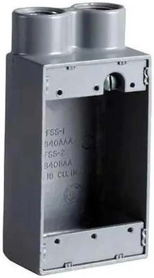 Device Box, Number of Gangs 1, Number of Inlets 2, Length 4.62 in, Width 2.87 in, Depth 2 in, Hub Size 1/2 in, Color Gray, Box Type FSS, Capacity 18 cu in, Description/Special Features Internal Grounding Screw, Tapered Threads, Material Malleable Iron, Mounting Holes O. C. (In. ) 0.5 in. This item has been restricted from sale in the following state (s): []