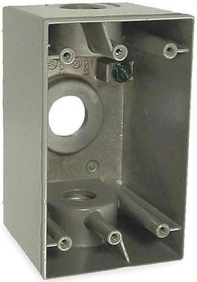 Electrical Box, Box Type Single Gang, Number of Gangs 1, Capacity 22.5 cu in, Material Aluminum, Color Gray, Standards CSA, UL Listed. This item has been restricted from sale in the following state (s): []