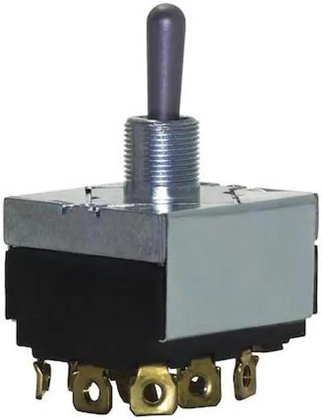 Toggle Switch, Contact Form 3PDT, Number of Connections 9, Switch Function On/On, AC Contact Rating 10 A @ 250 V, 15 A @ 125 V, HP 3/4 hp, Terminals Screw, Mounting Hole 0.50 in dia, Actuator Length 0.68 in, Stem Length 0.47 in, Stem Dia. and Thread Size 0.500 in, Actuator Color Silver, Stem Color Silver, Standards CSA, RoHS, UL Listed, Includes Panel Mounting. This item has been restricted from sale in the following state (s): []