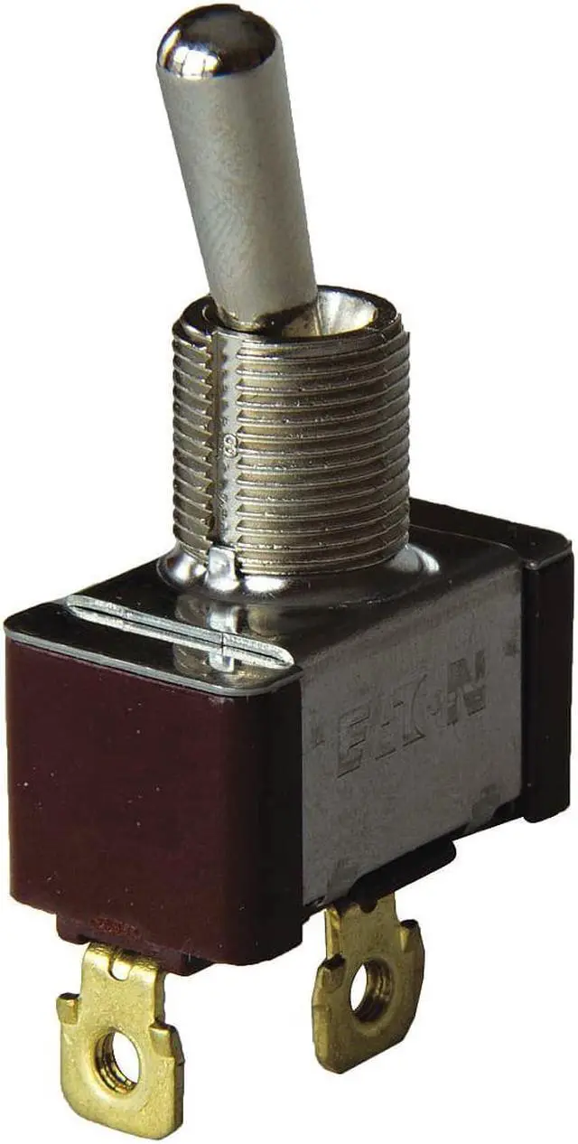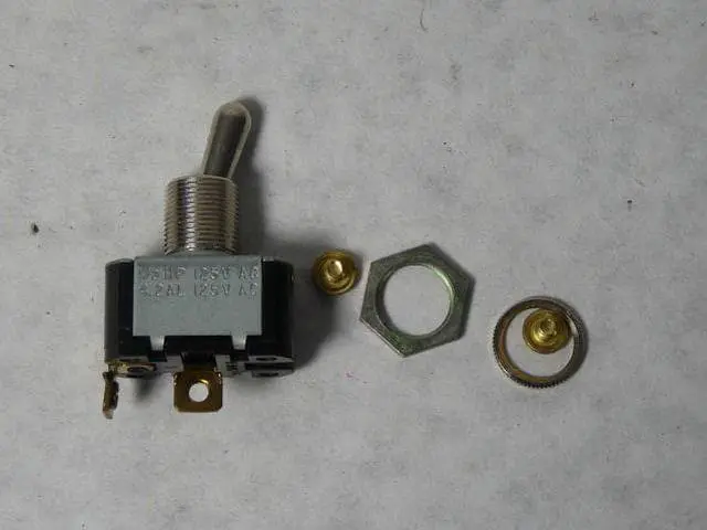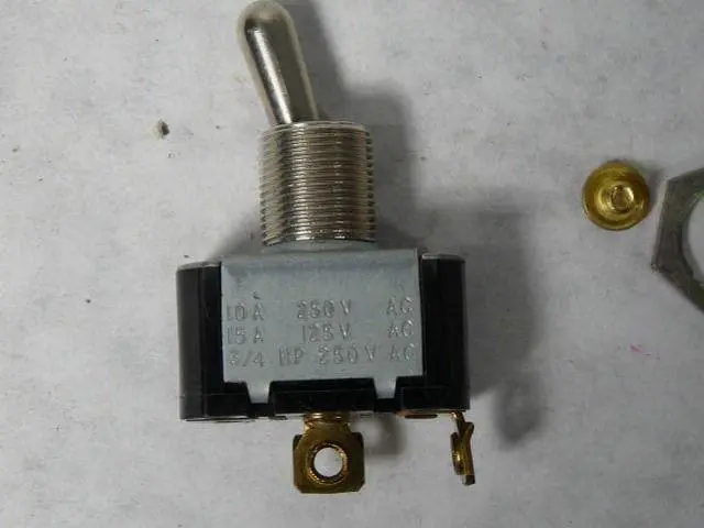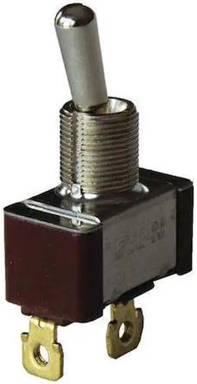 Toggle Switch, Contact Form SPST, Number of Connections 2, Switch Function On/Off, AC Contact Rating 10 A @ 250 V, 20 A @ 125 V, HP 3/4 hp, Terminals Screw, Mounting Hole 0.50 in dia, Actuator Length 0.56 in, Stem Length 0.47 in, Stem Dia. and Thread Size 0.500 in, Actuator Color Silver, Stem Color Silver, Standards CSA, RoHS, UL Listed, Includes Panel Mounting. This item has been restricted from sale in the following state (s): []