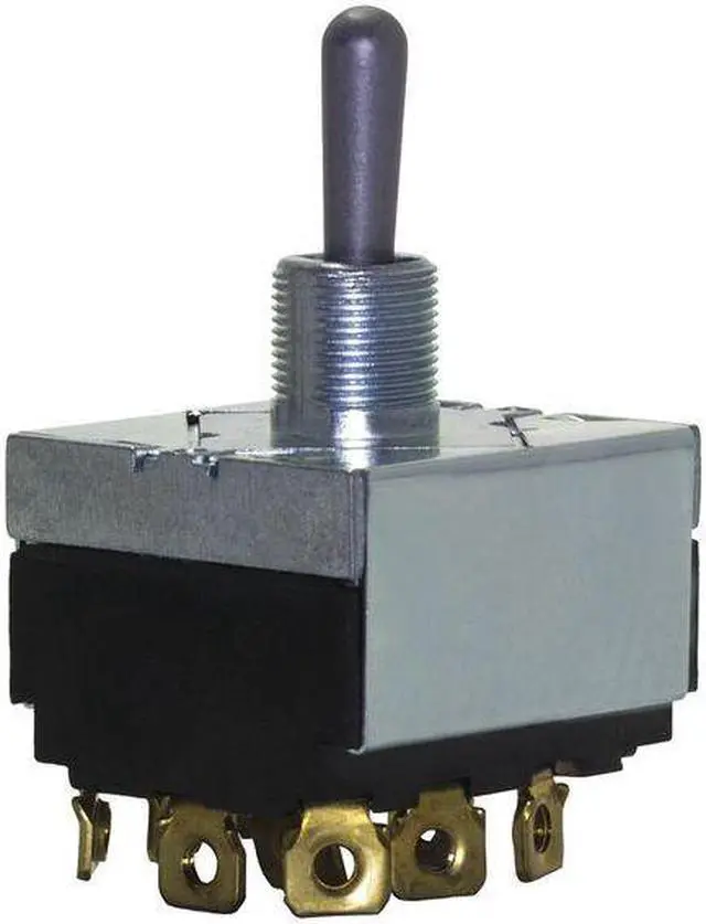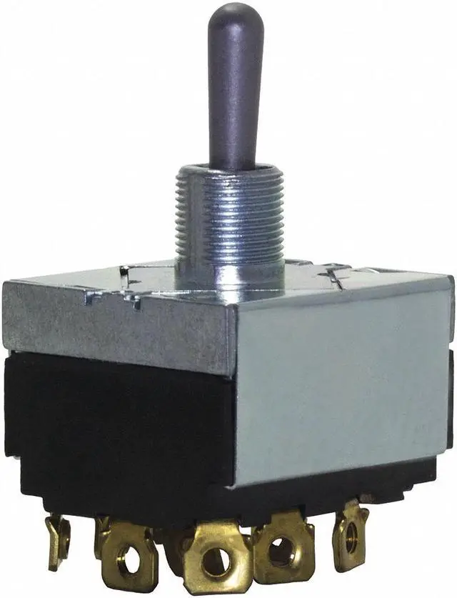 Toggle Switch, Contact Form 4PDT, Number of Connections 12, Switch Function On/On, AC Contact Rating 10 A @ 250 V, 15 A @ 125 V, HP 3/4 hp, Terminals Screw, Mounting Hole 0.50 in dia, Actuator Length 0.68 in, Stem Length 0.47 in, Stem Dia. and Thread Size 0.500 in, Actuator Color Silver, Stem Color Silver, Standards CSA, RoHS, UL Listed, Includes Panel Mounting. This item has been restricted from sale in the following state (s): []