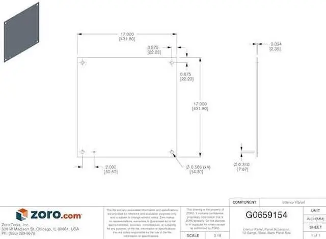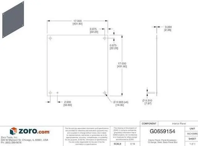 Interior Panel, Steel Material, Polyester Powder Finish, For Use With Mfr. No. N4202008, N12202008, RHC202008, B202007CH, SDN12202108, Sub-Category Panel and Panel Accessories, Height 17.00 In., Length 17.00 In., Width 17.00 In., 12 Gauge. This item has been restricted from sale in the following state (s): []