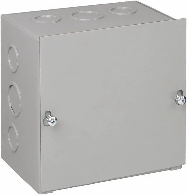 Enclosure NEMA Rating 1, Material of Enclosure Carbon Steel, 6 in, Screw On Enclosure Cover Type, Solid / Clear Cover Solid, Closure Method Screws, Finish Powder Coated, Color Gray, Depth 6 in, Enclosure Cover Features Screw Latch, Features Mounting Holes, Height 6 in, IP Rating IP30, Metal Gauge 12/14/16 ga, Wall Mounting, Series A90P1, Standards cUL Listed per CSA C 22.2 No 40, File No E27525, IEC 60529, NEMA/EEMAC Type 1, UL 50, 50E Listed, Width 6 in.