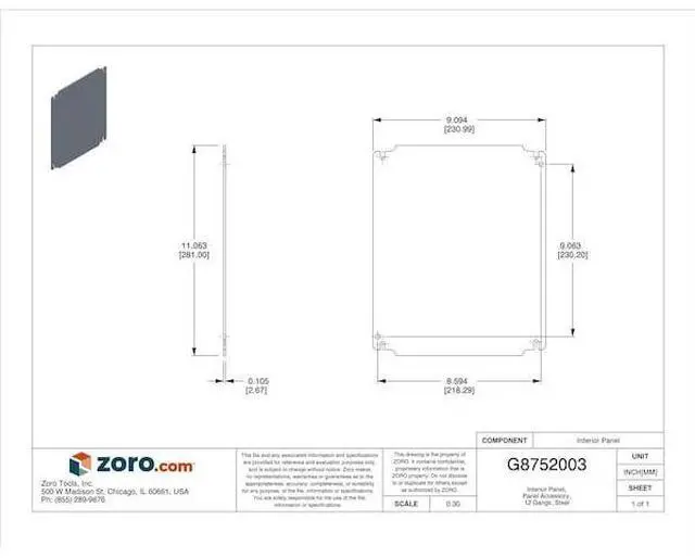 Panel, Steel Material, Polyester Powder Paint Finish, Sub-Category Panel and Panel Accessories, Height 11.81 In., Width 9.84 In., Includes Labeled Ground Hole Sized for An M6 Screw, 12 Gauge. This item has been restricted from sale in the following state (s): []