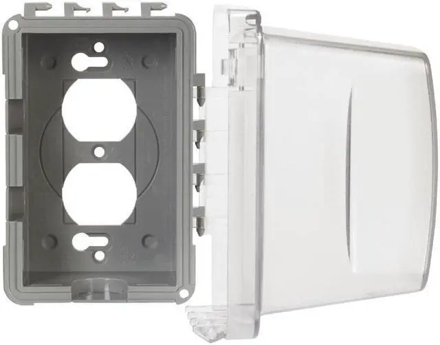While In Use Weatherproof Cover, Body Material Polycarbonate, Mounting Orientation Horizontal or Vertical, Receptacle Type Decora/GFCI Receptacle, Duplex, Toggle Switch and Single Receptacle, Depth 5 in, Number of Gangs 1, Width 3 3/4 in, Height 5 1/2 in, Features Deep, Gasket Material Polyethylene Foam, Color Clear, Standards cULus Listed, NEC, Includes Attached Gasket, Mounting Hardware. This item has been restricted from sale in the following state (s): []
