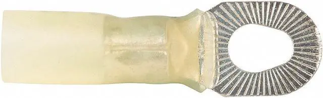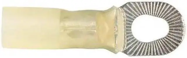 Ring Terminal, Insulation Color Yellow, Insulation Coverage Full Coverage, Insulation Material Heat Shrink, Maximum Temperature 221 Degrees F, Maximum Voltage 600 V, Minimum Wire Size 12 AWG, Maximum Wire Size 10 AWG, Termination Style Crimp, Tongue Width 0.39 in, Contact Material Nickel Alloy, Standards CSA Certified, UL Listed, Barrel Style Brazed, Insulation Type Heat Shrink, Minimum Operating Temperature 221 Degrees F, Overall Length 1.35 in, Package Quantity 10. This item has been restricted from sale in the following state (s): []