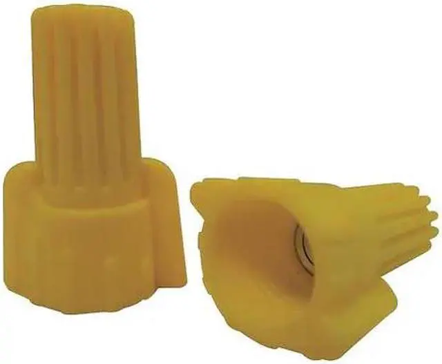 Twist On Wire Connector, Color Yellow, For Conductor Material Copper, Maximum Operating Temperature 221 Degrees F, Maximum Voltage 600 V, Minimum Wire Combination (2) 18 AWG, Maximum Wire Combination (2) 12 AWG with (1) 14 AWG, Contact Finish Zinc, Contact Material Steel, UL 94 Flammability Rating V-2, Maximum Conductors 6,