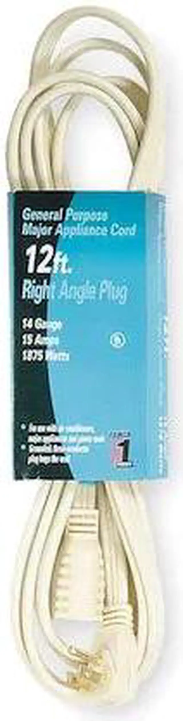 Extension Cord, Location Indoor, Cord Length 12 ft, Wire Size 14 AWG, Max. Amps 15 A, Voltage 125V AC, Plug Configuration NEMA 5-15P, Receptacle Configuration NEMA 5-15R, Cord Ending Single Connector, Number of Outlets 1, Jacket Color Beige, Jacket Material PVC, Trade Designation SPT-3, Cord Shape Flat, Temp. Rating 32 Degrees to 167 Degrees F, Number of Conductors 3, Power Indicator No, Plug Style Right Angle, Max. Watts 1,875 W, Nominal Outside Dia. 0.23 in x 0.51 in