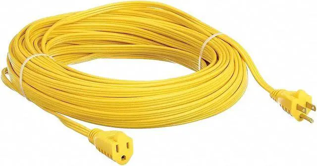 Extension Cord, Location Indoor, Cord Length 100 ft, Wire Size 16 AWG, Max. Amps 10 A, Voltage 125V AC, Plug Configuration NEMA 5-15P, Receptacle Configuration NEMA 5-15R, Cord Ending Single Connector, Number of Outlets 1, Jacket Color Yellow, Jacket Material PVC, Trade Designation SPT-2, Cord Shape Flat, Temp. Rating 32 Degrees to 167 Degrees F, Number of Conductors 3, Power Indicator No, Plug Style Straight, Max. Watts 1,250 W, Nominal Outside Dia. 0.16 in x 0.36 in