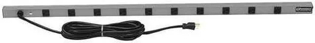 Outlet Strip, Application Workbench and Cabinet, Housing Material Aluminum, Total Number of Outlets 8, Max. Amps 15 A, Cord Length 6 ft, Number of Power Switches 1, Power Indicator Yes, Number of Outlet Rows 1, Receptacle Configuration NEMA 5-15R, Plug Configuration NEMA 5-15P, Wire Size 14 AWG, Mounting Style Vertical, Color Gray, Medical Facility Use Not Allowed, Number of Transformer Outlets 0, Number of Conductors 3, Voltage 125V AC, Outlet Center Distance 5 5/8 in, Length 48 in