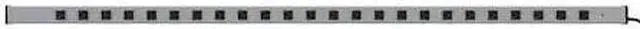 Outlet Strip, Application Workbench and Cabinet, Housing Material Aluminum, Total Number of Outlets 24, Max. Amps 15 A, Cord Length 15 ft, Number of Power Switches 0, Power Indicator No, Number of Outlet Rows 1, Receptacle Configuration NEMA 5-15R, Plug Configuration NEMA 5-15P, Wire Size 14 AWG, Mounting Style Vertical, Color Gray, Medical Facility Use Not Allowed, Number of Transformer Outlets 0, Number of Conductors 3, Voltage 125V AC, Outlet Center Distance 2 1/2 in, Length 72 in