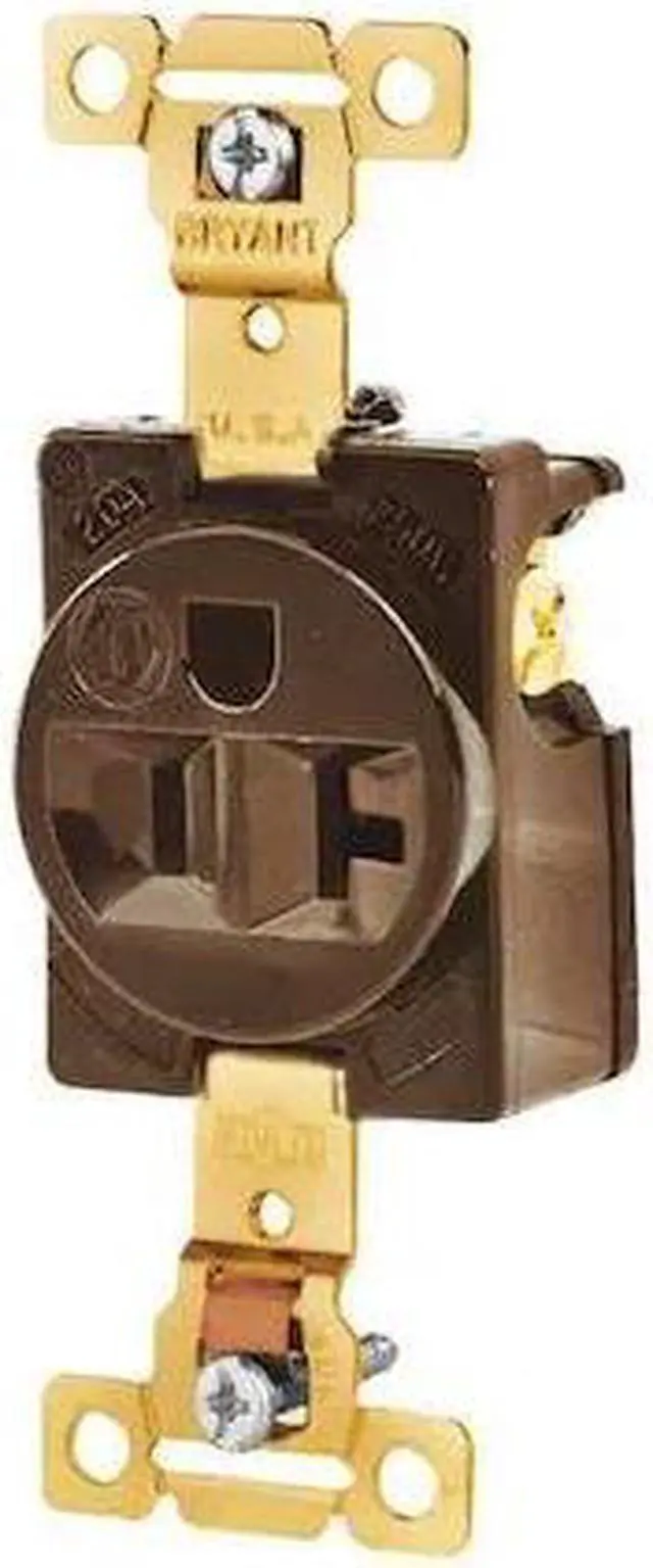 Receptacle, Connection Orientation Straight, Cover Type No Cover, Current Rating 20 A, GFCI No, Grounding Grounded, Housing Color Brown, Housing Material Nylon, Mount Type Flush, NEMA Receptacle Configuration 5-20R, Number of Gangs 1, Number of Poles 2, Number of Wires 3, Phase Single, Polarized Yes, Receptacle Type Single, Resistance Properties Corrosion Resistant, Standards CSA Certified, UL Listed, Voltage Rating 125V AC, Wire Connection Type Screw Terminals, Wiring Method Back, Side, AFCI No. This item has been restricted from sale in the following state (s): []