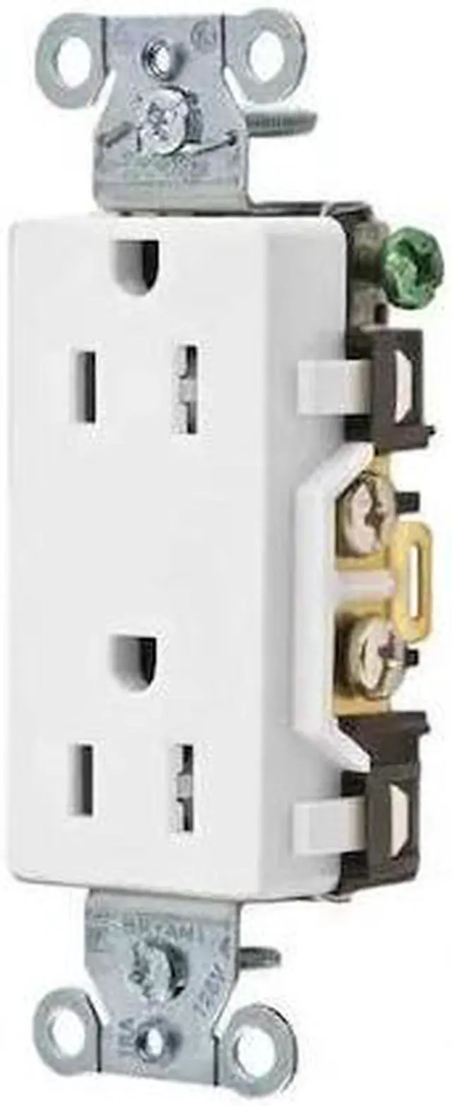 Receptacle, Connection Orientation Straight, Cover Type No Cover, Current Rating 15 A, GFCI No, Grounding Grounded, Housing Color White, Housing Material Composite, Mount Type Flush, NEMA Receptacle Configuration 5-15R, Number of Gangs 1, Number of Poles 2, Number of Wires 3, Phase Single, Polarized Yes, Receptacle Type Decorator Duplex, Resistance Properties Tamper Resistant, Standards CSA Certified, Federal Specification, UL Listed, Voltage Rating 125V AC, Wire Connection Type Screw Terminals. This item has been restricted from sale in the following state (s): []