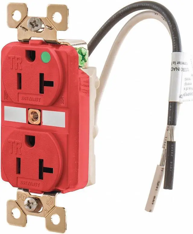 Receptacle, Connection Orientation Straight, Cover Type No Cover, Current Rating 20 A, GFCI No, Grounding Grounded, Housing Color Red, Housing Material Composite, Mount Type Flush, NEMA Receptacle Configuration 5-20R, Number of Gangs 1, Number of Poles 2, Number of Wires 3, Phase Single, Polarized Yes, Receptacle Type Duplex, Resistance Properties Tamper Resistant, Standards CSA Certified, UL Listed, Voltage Rating 125V AC, Wire Connection Type Screw Terminals, Wiring Method Back, Side, AFCI No. This item has been restricted from sale in the following state (s): []
