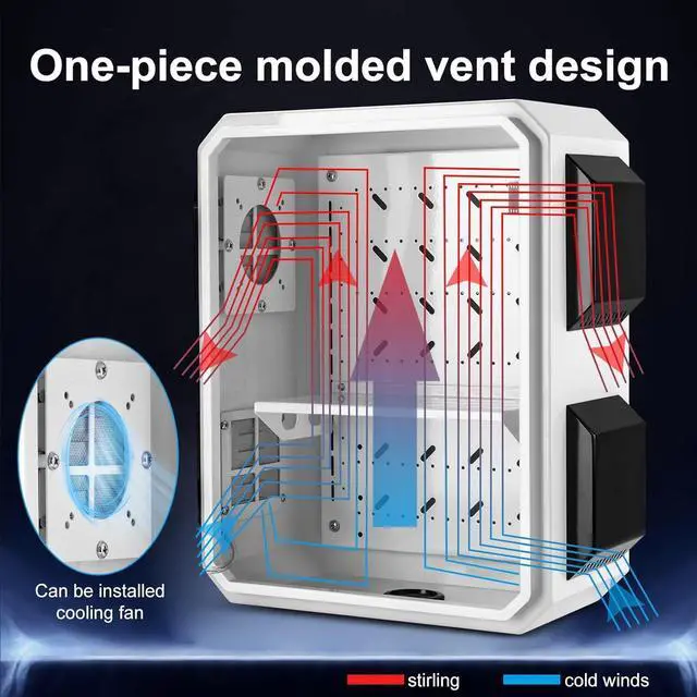 The distribution box design have four ventilation slots, IP65 waterproof level, and can be installed in an 8cm × 8cm or 9cm × 9cm cooling fan hole.