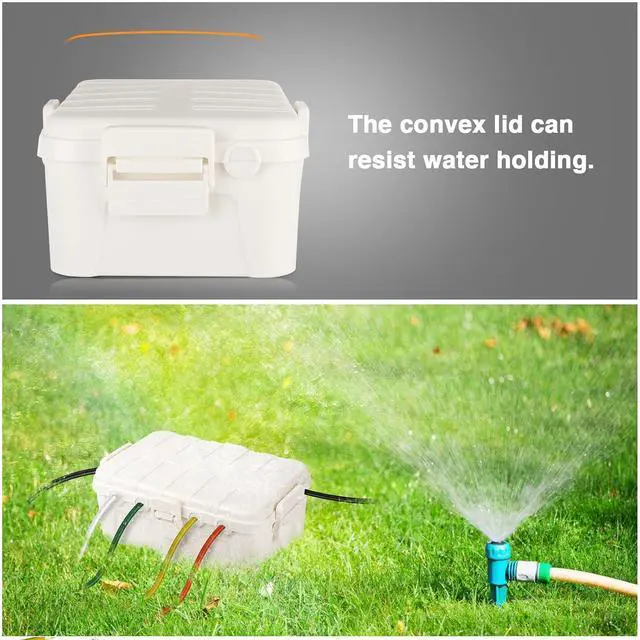 Designed to keep outdoor temporary cord connection secure and protected. Features with large size ( 12.5 x 8.5 x 5 inch) and 6 cable entry ports (front*4 + side*2), it is one-stop solution to protect outdoor power strip, timer outlet plug, extension cord, large adapter and most of other electrical connections.